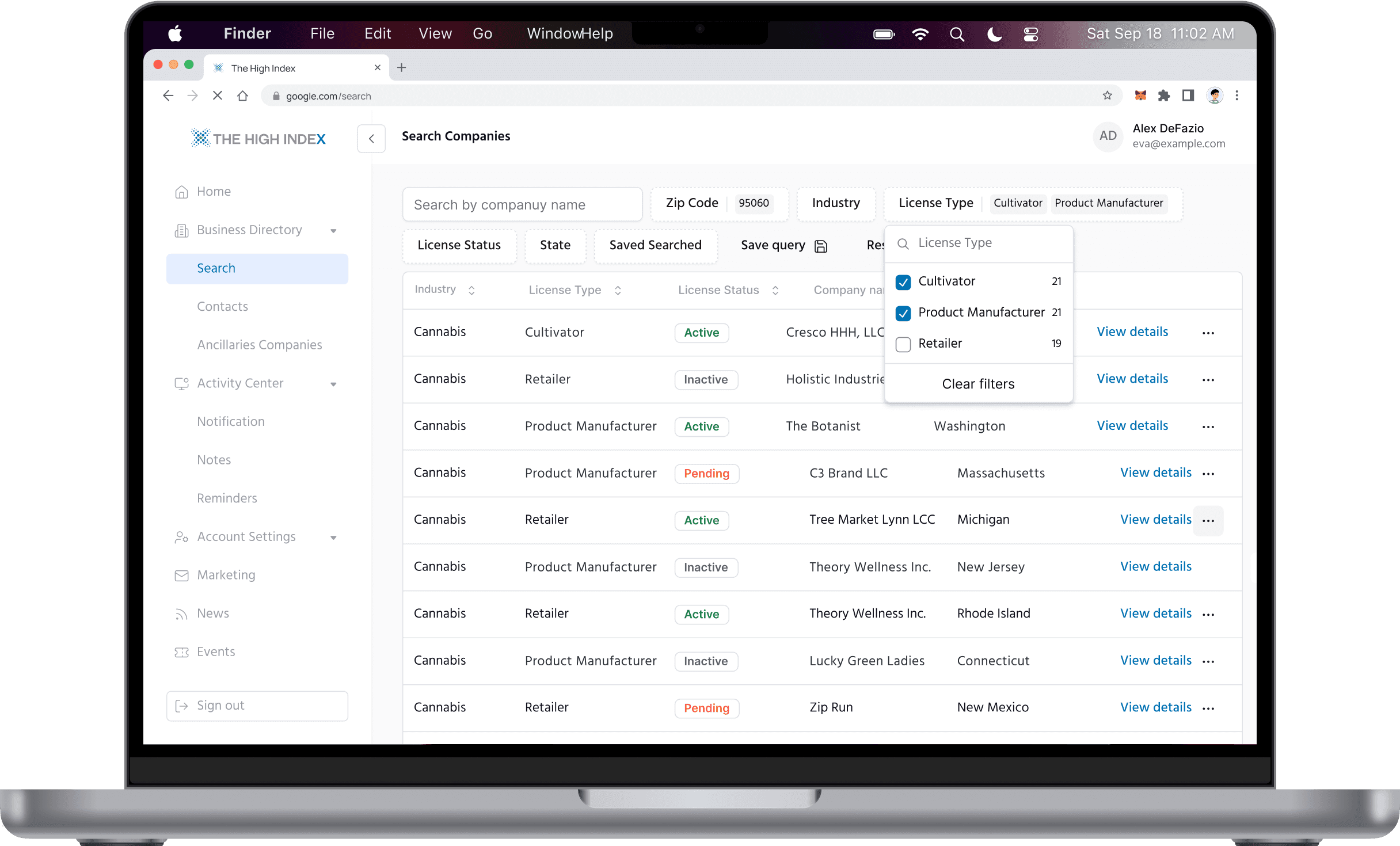 Experience the power of our B2B cannabis database, designed to make every interaction seamless, enjoyable, and packed with the insights you need to find leads.